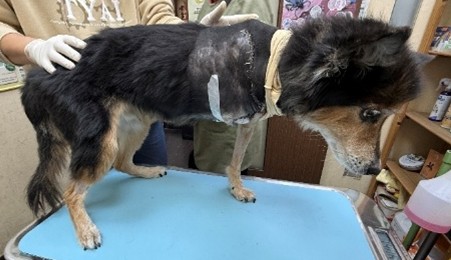 吉祥因無力跛行數月接受治療卻未改善後,右前肢快速腫大,確診罹患骨肉瘤,進行截肢手術治療。